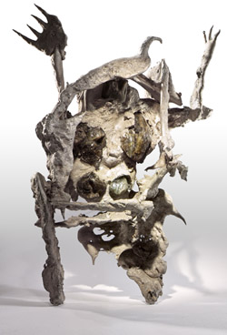 in casting, including a bird’s nest carved into the shape of a face. Other works of this period provide the bridge between